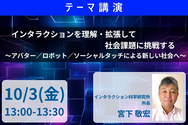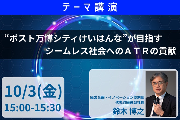 最先端研究とその社会実装に向けた多様な取り組みを通じて、人と社会の新たな可能性を切り拓くATRが、関連会社や連携機関とともに、脳科学やアバター、ロボティクス、無線・通信、生命科学などの研究成果や事業を、社会課題の解決に向けたソリューション別の視点で紹介します。展示に加え、“ポスト万博シティけいはんな”への貢献など多様な講演も実施。ATRグループと連携機関による取り組みを通じて、未来社会の姿を展望いただけます。皆さまのご来場をお待ちしております。